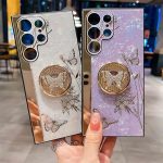 Samsung Galaxy S24 Ultra Bling Butterfly Stand Glitter Diamond Design With Luxury Plating Shell Case